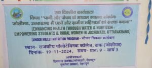 ज्योर्तिमठ। मंगलवार को हिमवाल सोसाइटी, देहरादून और यूकॉस्ट, देहरादून की ओर से छात्रों और महिलाओं को सशक्त बना ने के उद्देश्य को लेकर “पानी और पोषण के माध्यम से स्वास्थ्य संवर्धन” पर राजकीय पॉलीटेक्निक कॉलेज, ढाक में एकदिवसीय कार्यशाला का आयोजन राजकीय पॉलीटेक्निक कॉलेज, ढाक में किया