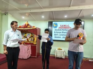 मुख्य अतिथि द्वारा कन्या भारती अध्यक्ष पद पर प्रांजली,उपाध्यक्ष पद पर प्रिंसी ,मंत्री पद पर कशिश तथा सचिव पद पर कनिका को पद एवं अनुशासन की शपथ दिलाई । विशिष्ट अतिथि द्वारा छात्र संसद मैं प्रधानमंत्री पद पर ऋषभ राणा, उप प्रधानमंत्री पद पर आदर्श रावत तथा कार्यक्रम अध्यक्ष द्वारा स्वर्णम पाण्डेय को सेनापति, समीर रावत को संसदीय कार्य मंत्री, अशीष नेगी को उपसंसदीय मंत्री पद साहित सभी नवनिर्वाचित एवं मनोनीत सांसदों को शपथ दिलाई गई तत्पश्चात छात्र संसद के कुल 24 परिषदों के विभाग प्रमुख एवं उप प्रमुखों को उत्तरदायित्व का बोध कराया गया ।