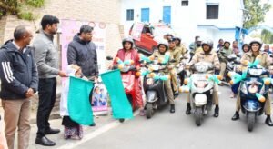 जिलाधिकारी ने हरी झंडी दिखाकर किया पुलिस और होमगार्ड की महिला जवानों की रैली का रवाना