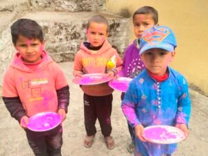 गांव में लोगों ने घर घर में होली के मुख्य पकवान गुजिया एवं पहाड़ी व्यंजन बनाकर एक दूसरे को खिलाया,स्नेह और सद्भाव से सराबोर रंगो का लोक एवं पारंपरिक त्यौहार आपसी प्रेम और भाईचारे के साथ बड़े ही हर्षोल्लास के साथ मनाया।