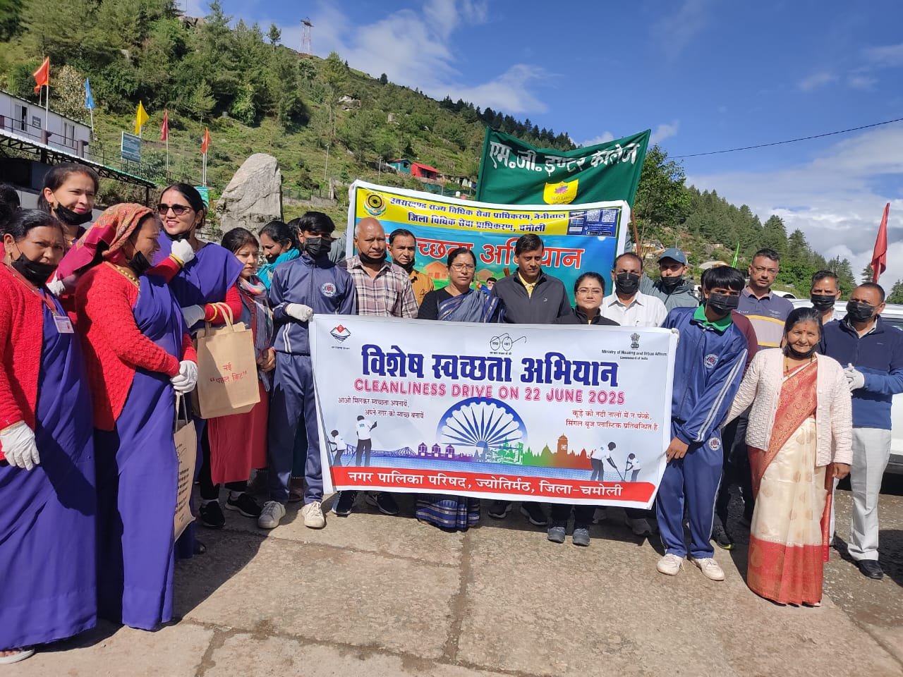 ज्योतिर्मठ। रविवार। 22 जून 2025 को सिविल जज(सी0डी0) सचिव, जिला विधिक सेवा प्राधिकरण चमोली एवं जिलाधिकारी चमोली के निर्देशों के क्रम में नगर पालिका परिषद जोशीमठ द्वारा औली में विशेष स्वच्छता अभियान/श्रमदान का आयोजन किया गया। जिसमे औली में बिखरे अजैविक कूड़े को एकत्रित किया गया तथा स्वच्छता शपथ ली गयी।