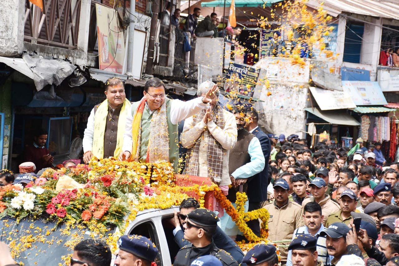 गोपेश्वर में सीएम धामी का भव्य रोड शो में उमड़ा जन सैलाब।पुष्प वर्षा से हुआ भव्य स्वागत।