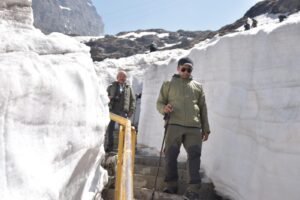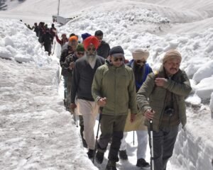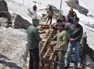 चमोली।श्री हेमकुंड साहिब की यात्रा शुरू होने से पहले जिलाधिकारी हिमांशु खुराना ने विभागीय अधिकारियों के साथ गोविंद घाट गुरुद्वारा से हेमकुंड साहिब तक 18 किलोमीटर की दूरी पैदल चलकर यात्रा मार्ग पर व्यवस्थाओं का जायजा लिया। उन्होंने अधिकारियों को निर्देशित किया कि हेमकुंड साहिब की यात्रा को सुगम और सुखद बनाने के लिए यात्रा से पहले पैदल मार्ग पर सभी व्यवस्थाओं को सुचारू किया जाए। श्री हेमकुंड साहिब और लोकपाल मंदिर की यात्रा इस साल 25 मई से शुरू होगी। हेमकुंड साहिब गुरुद्वारा के आसपास अभी भी करीब 08 फीट बर्फ है। यहां लक्ष्मण मंदिर व हेमकुंड सरोवर भी पूरी तरह से बर्फ से ढका हुआ है। हालांकि सेना के जवानों ने हेमकुंड साहिब मार्ग पर बर्फ हटाकर आवाजाही सुचारू कर दी है।