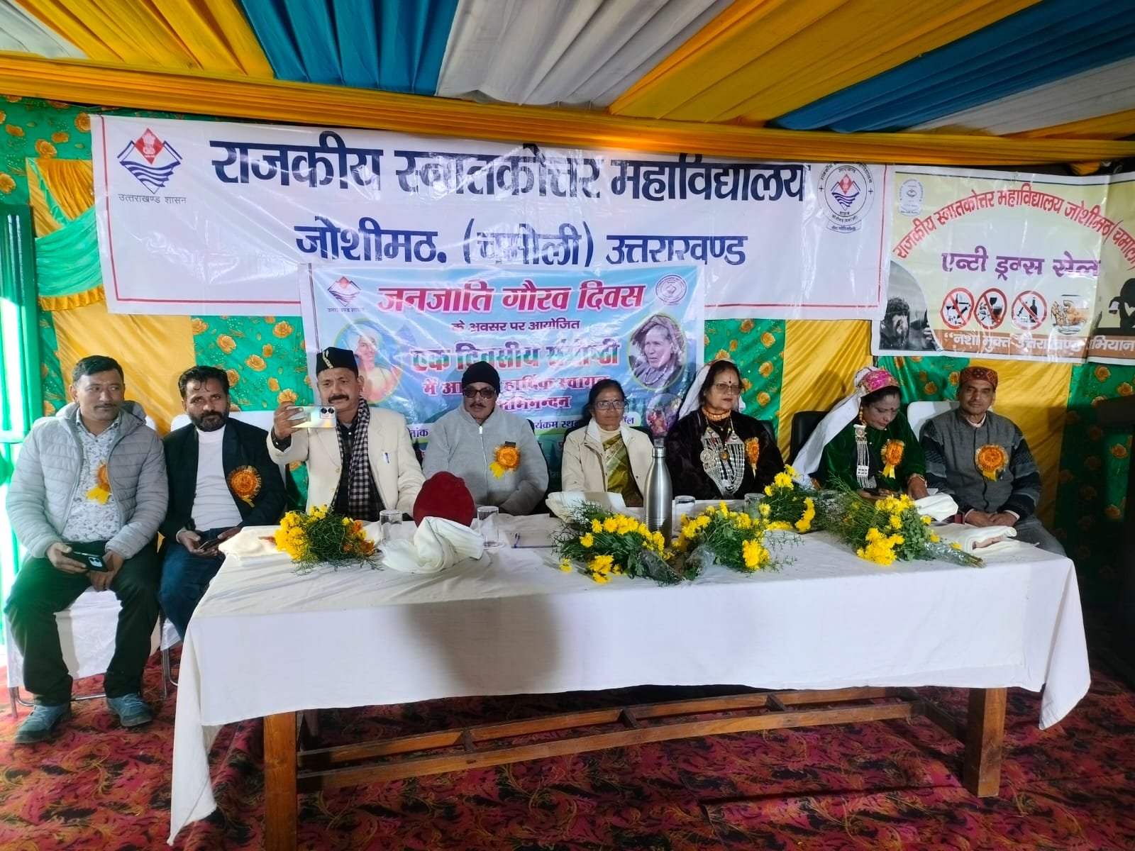 विशिष्ट अतिथि और सामाजिक कार्यकर्ता अतुल सती ने जनजातियों के संघर्ष की परंपरा पर उल्लेखनीय विचार रखे। सामाजिक कार्यकर्ता पुष्कर सिंह राणा ने अपने व्याख्यान में नीती माणा घाटी के जनजातीय नायकों को याद किया। विशिष्ट अतिथि सामाजिक कार्यकर्ता नंदी राणा ने चिपको आंदोलन और गौरा देवी की महान विरासत को याद करते हुए कहा कि जनजातियां सदैव सामाजिक-सांस्कृतिक और पर्यावरणीय आंदोलनों में मुखर रही हैं। इस अवसर पर आयोजित विशेष व्याख्यान में साहित्यकार डॉ. चरणसिंह केदारखंडी , समाज विज्ञानी डॉ. राजेन्द्र सिंह और इतिहासकार डॉ. रणजीत सिंह मर्तोलिया ने कहा कि जनजातीय समाज जल, जंगल और ज़मीन से सबसे निकटता से जुड़ा होता है और बिरसा मुंडा के छोटा नागपुर के पठार सहित गुजरात से लेकर नागालैंड और कश्मीर-हिमाचल से लेकर बिहार झारखंड और दक्षिण भारत की सभी जनजातियों का सबसे बड़ा संदेश यही है कि मनुष्य का प्रकृति से सही रिश्ता क्या होना चाहिए। इस अवसर पर गौरा देवी के पौत्र सोहन सिंह , सामाजिक कार्यकर्ता मुकेश साह, पार्षद ललिता देवी , पी. टी.ए. अध्यक्ष कलम सिंह राणा , पैनखंडा जनजाति उत्थान समिति के धर्मेंद्र पँवार और उप कोषाधिकारी राजेश कुमार और पूर्णिमा ने भी अपने विचार रखे। जनजातीय गौरव की थीम पर युवाओं ने रंगारंग सांस्कृतिक कार्यक्रम प्रस्तुत किये। अध्यक्षीय भाषण देते हुए महाविद्यालय की प्राचार्य और ‘धरती आबा’ के नाम से विख्यात बिरसा मुंडा की धरती की बेटी प्रोफेसर प्रीति कुमारी ने कहा कि बिरसा मुंडा सहित भारत की जनजातियों का इतिहास और उनकी विरासत का पुनर्पाठ किया जाना चाहिए तभी नए भारत का निर्माण हो सकेगा।
