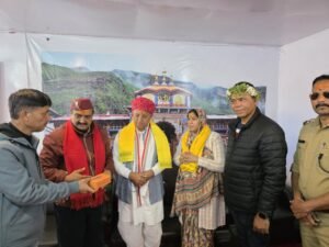 दर्शन पूजा के बाद श्री बदरीनाथ – केदारनाथ मंदिर समिति (बीकेटीसी) उपाध्यक्ष ऋषि प्रसाद सती ने केंद्रीय मंत्री का स्वागत किया तथा भगवान बदरीविशाल का प्रसाद एवं अंगवस्त्र भेंट किया तथा यात्रा व्यवस्थाओंं के बावत अवगत कराया