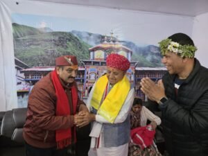 बीकेटीसी उपाध्यक्ष ऋषि प्रसाद सती ने किया केंद्रीय मंत्री का स्वागत।