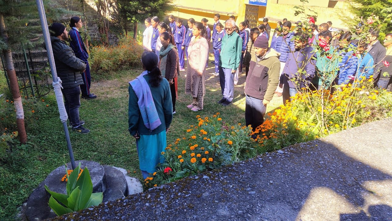 ज्योतिर्मठ , 07 नवंबर 2025 कालजयी राष्ट्रगीत ‘वंदे मातरम’ की रचना के 150 वर्ष पूरे होने पर आज राजकीय स्नातकोत्तर महाविद्यालय परिवार जोशीमठ ने पूरे जोश और उत्साह के साथ महाविद्यालय परिसर में एक कार्यक्रम आयोजित किया जिसका शुभारंभ वंदे मातरम के समवेत गायन से किया गया।